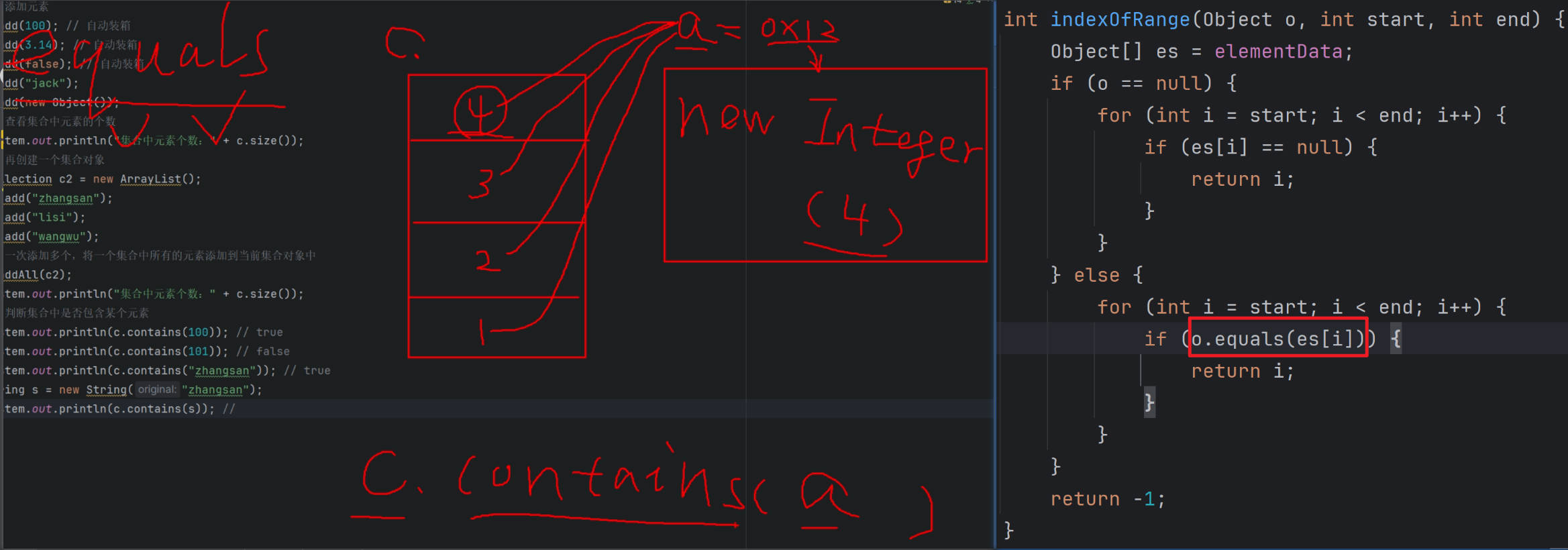 }④boolean contains(Object o); 判断集合中是否包含对象o(底层到底包含o还是不包含o,调用equals方法进行比对。)