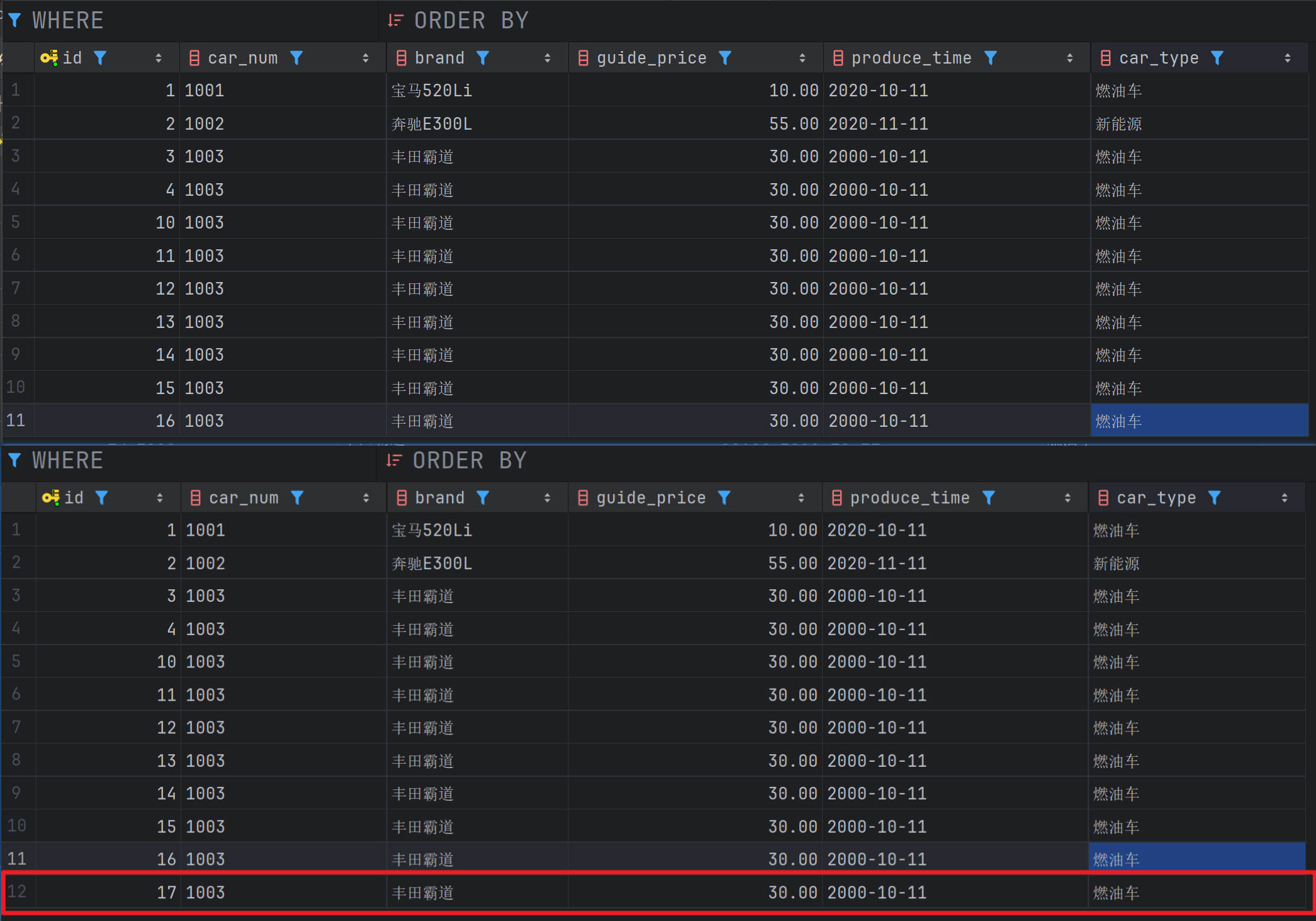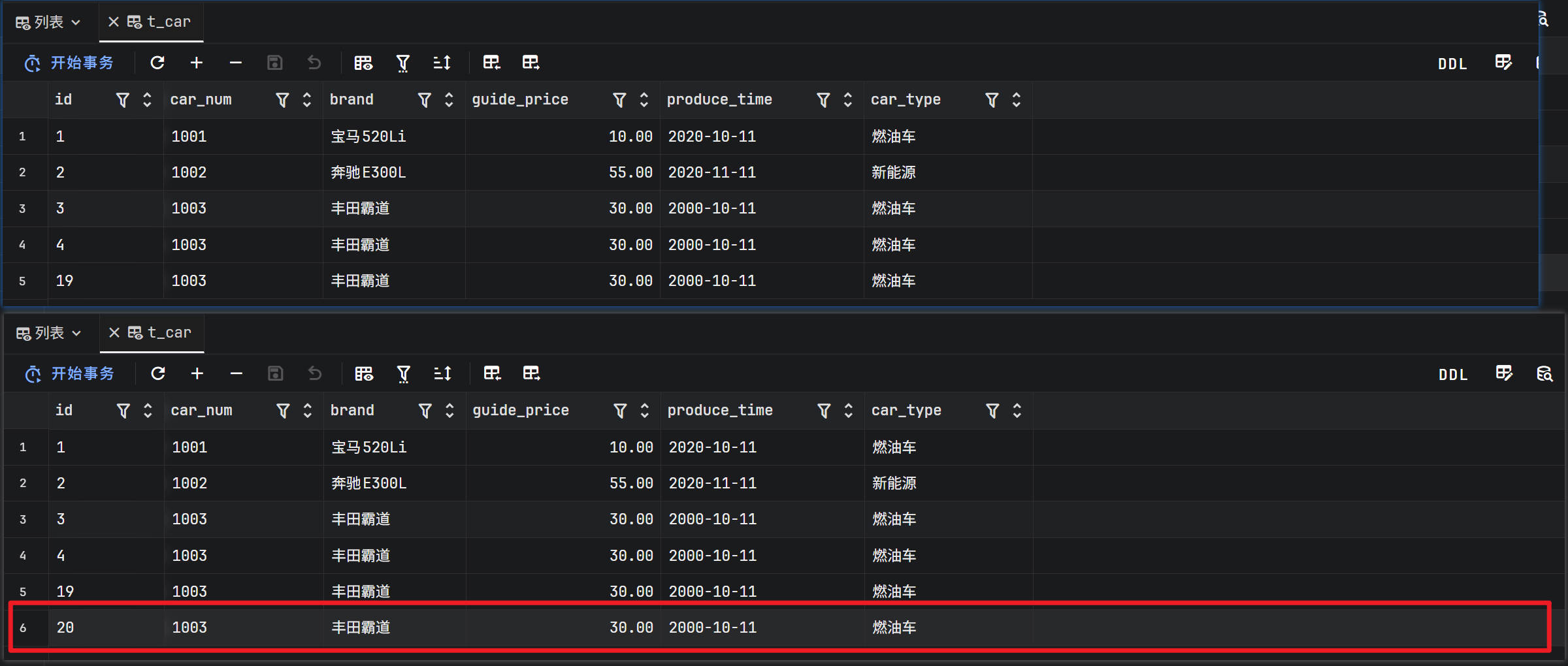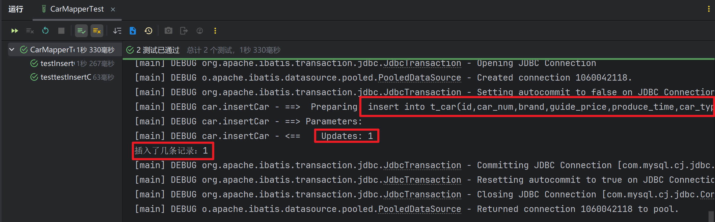 - 编写一个测试用例,来测试insertCar业务